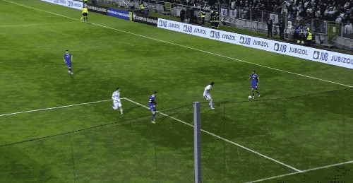 上半场补时阶段,雷米奇力压波利塔诺头球攻门,皮球稍稍偏出。